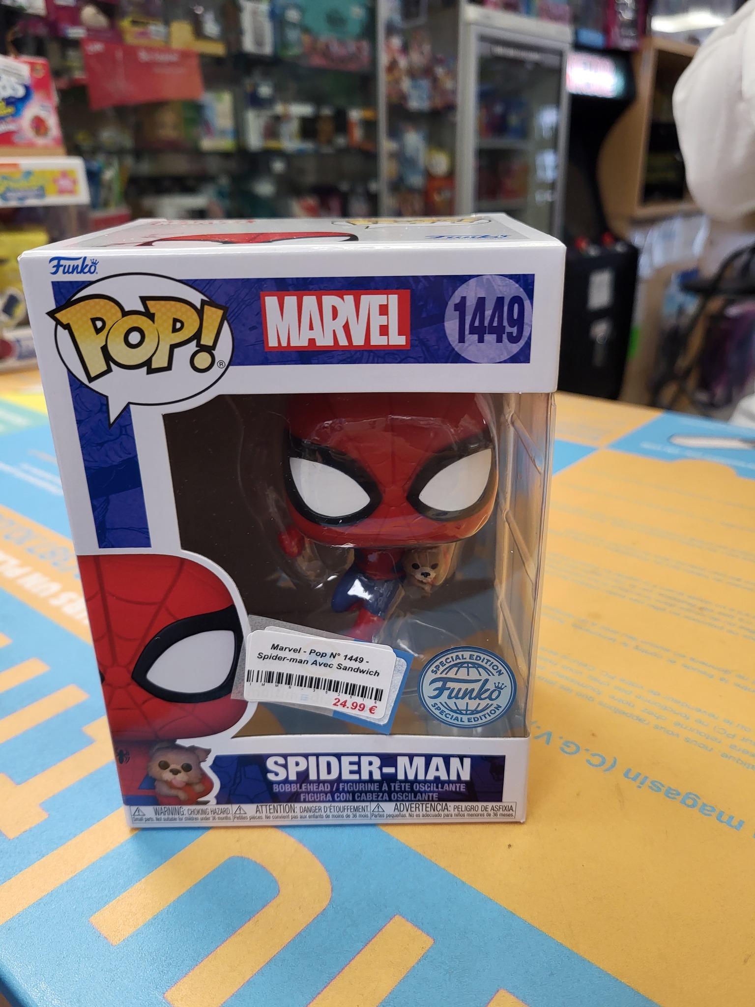 📍 Vous pouvez vérifier sa disponibilité en magasin et son prix actuel directement sur notre site à l’adresse https://www.multimediashop.be/75942-Acheter_Marvel_Pop_N_1449_Spider_man_Avec_Sandwich_sur_fig.html .