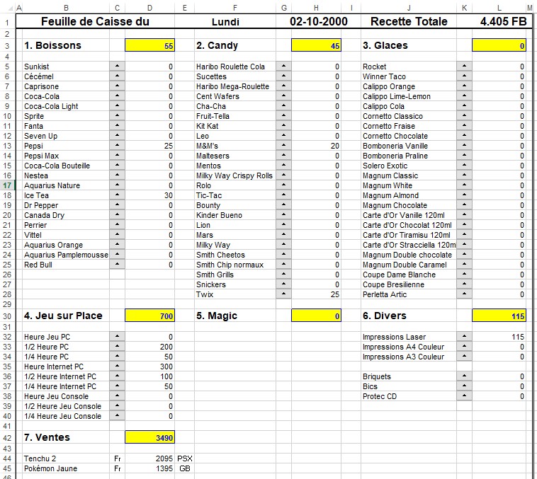 đż Une cinquantaine de jeux PC (en CD !), Dreamcast, N64, PS1 et Game Boy qui tentaient de masquer des rayonnages encore trĂšs vides sur le mur cĂŽtĂ© Turkuaz. đŹ Des bonbons, des chips et des sucreries en tous genres derriĂšre nous au comptoir, un congĂ©lateur OLA rempli de glaces⊠Qui sâen souvient ? đŸ