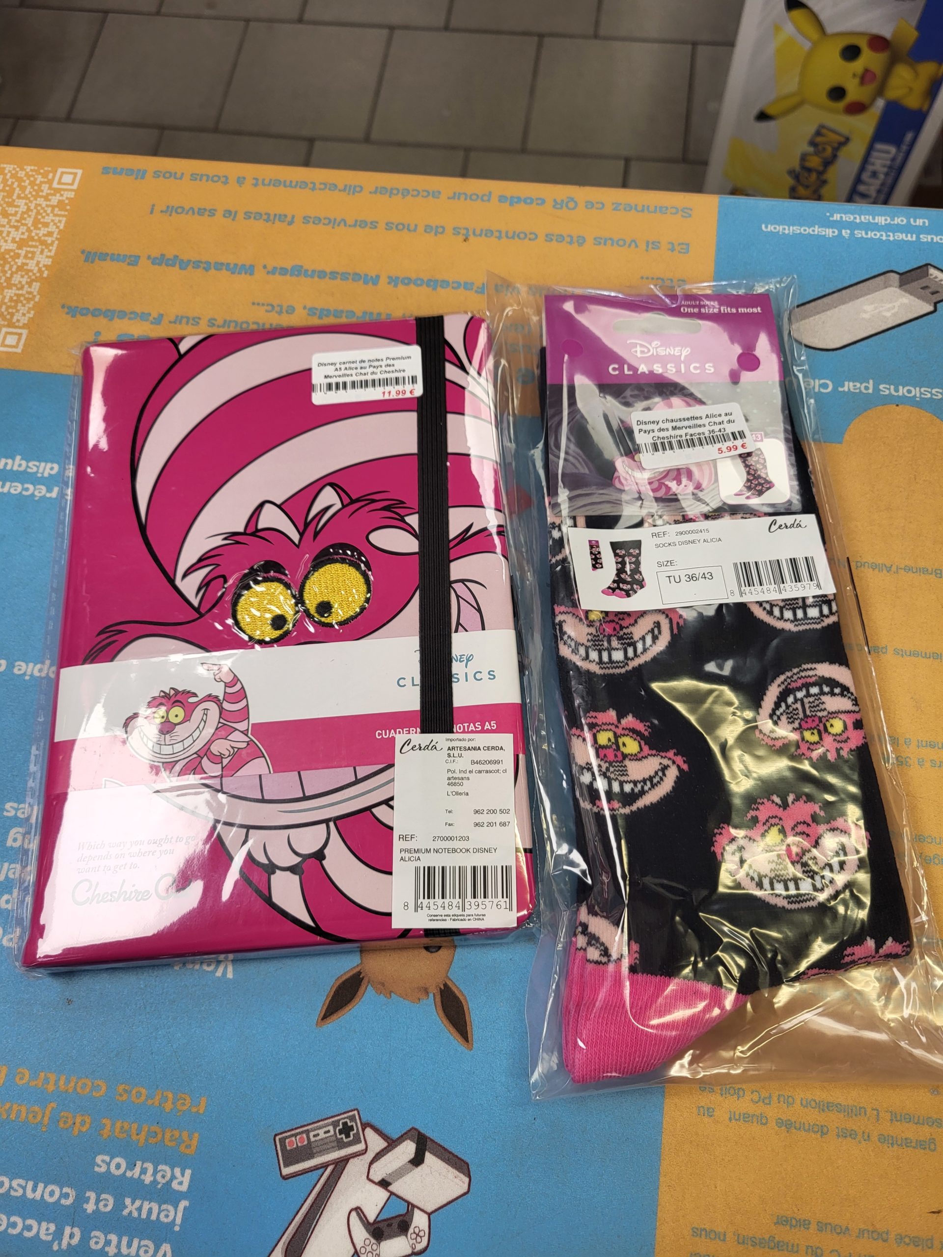 #multimediashop #commercelocal #brainelalleud #chaussettesfun #notebookA5 #CheshireCat #style #confort #papeterie
