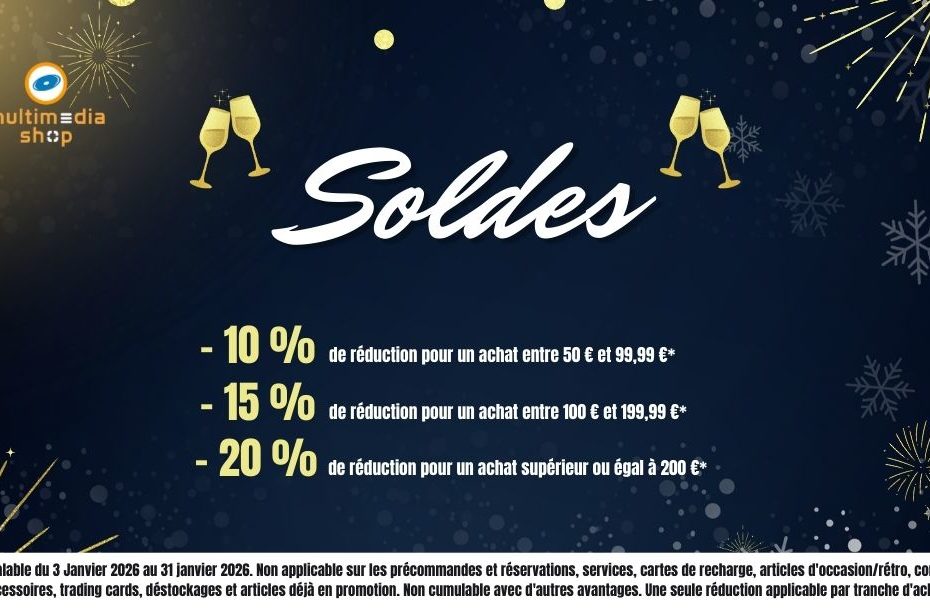 Les soldes battent leur plein chez Multimedia Shop et on a décidé de vous gâter encore plus. Profitez d’une remise exceptionnelle dès 50€ d’achat en produits participants pour repartir avec vos jeux, Funko Pops ou figurines préférés à prix cassé. C’est l’occasion idéale de compléter votre collection sans culpabiliser ! 🎮✨