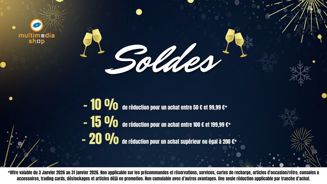 Les soldes battent leur plein chez Multimedia Shop et on a décidé de vous gâter encore plus. Profitez d’une remise exceptionnelle dès 50€ d’achat en produits participants pour repartir avec vos jeux, Funko Pops ou figurines préférés à prix cassé. C’est l’occasion idéale de compléter votre collection sans culpabiliser ! 🎮✨
