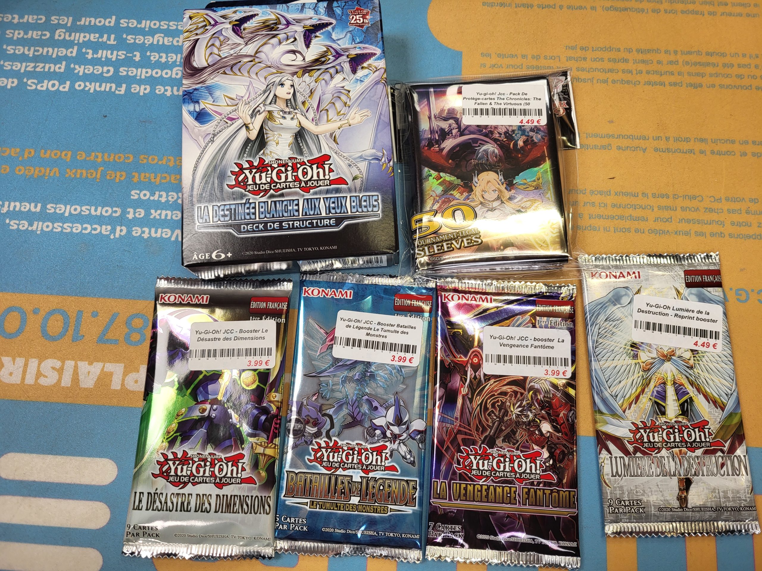 Boosters variés (Lumière de la destruction, La Vengeance Fantôme, Le Désastre des Dimensions et Le Tumulte des Monstres), Decks de structure surpuissants La Destinée Blanche aux Yeux Bleus et pochettes de protection The Chronicles: The Fallen & The Virtuous (50 Pochettes) : c’est le moment idéal pour booster votre deck avant votre prochain tournoi. Ne laissez pas passer ces pépites, il n’y en aura pas pour tout le monde ! 🏃💨
