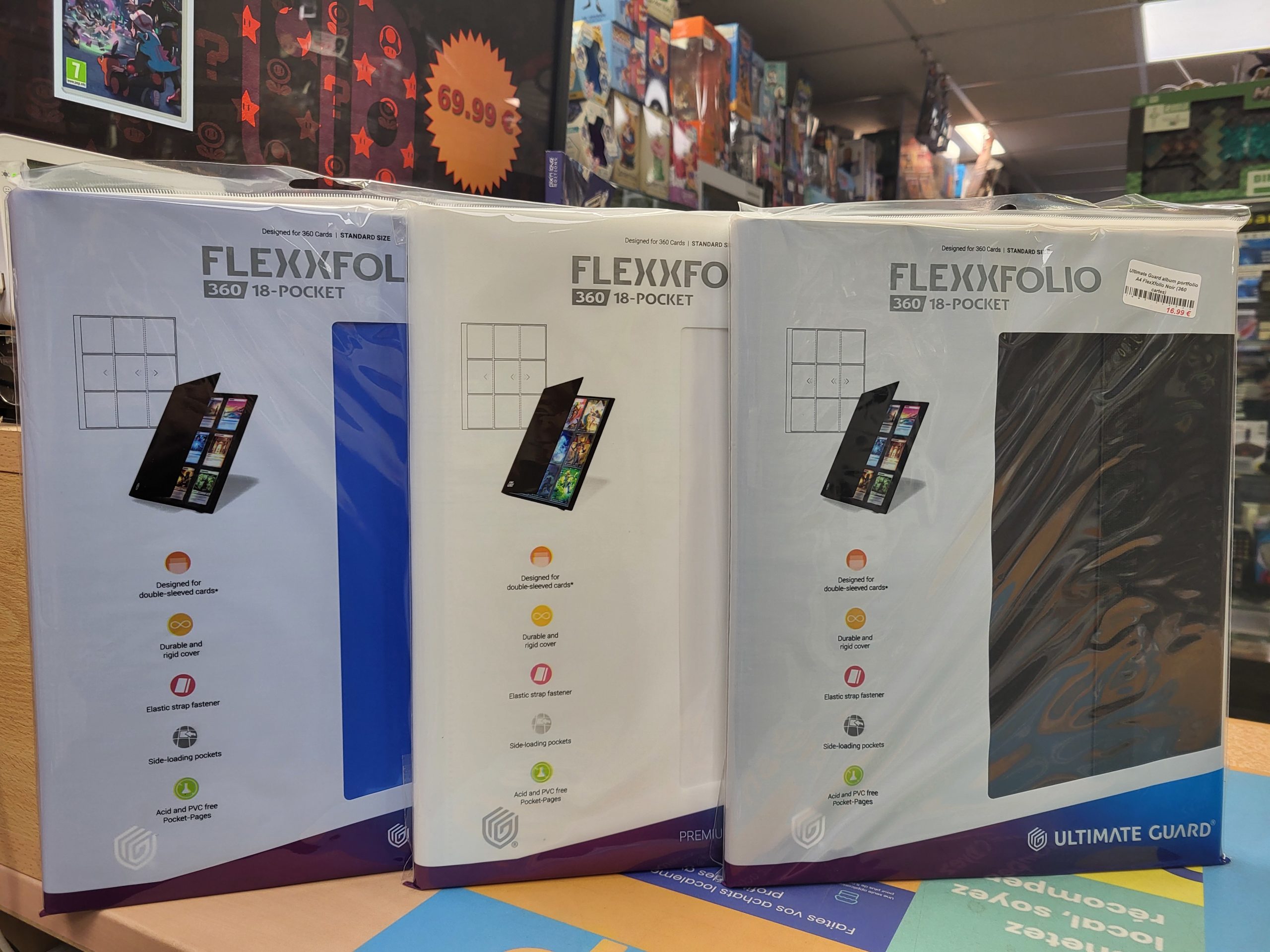 Compact, léger mais d’une solidité exemplaire, l’album FlexXfolio est le chouchou des joueurs exigeants. Venez choisir votre couleur préférée en magasin et offrez à votre collection l’organisation qu’elle mérite. Un indispensable pour tout dresseur ou duelliste ! 🃏🔥
