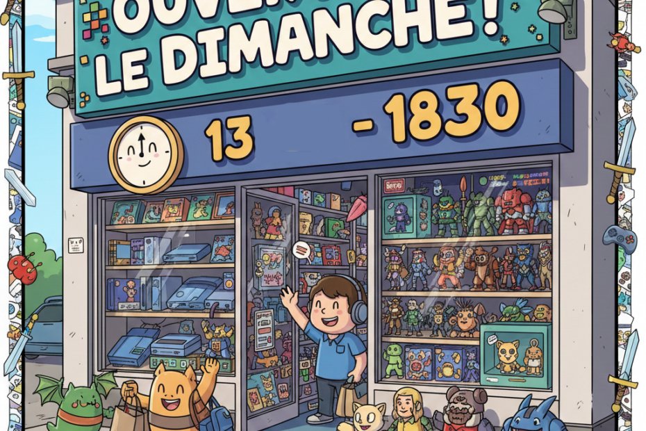 as de panique, nous sommes ouverts ce dimanche de 13h à 18h30 ! C’est le moment idéal pour venir flâner dans nos rayons, tester la borne d’arcade ou dénicher la pépite qui vous accompagnera toute…