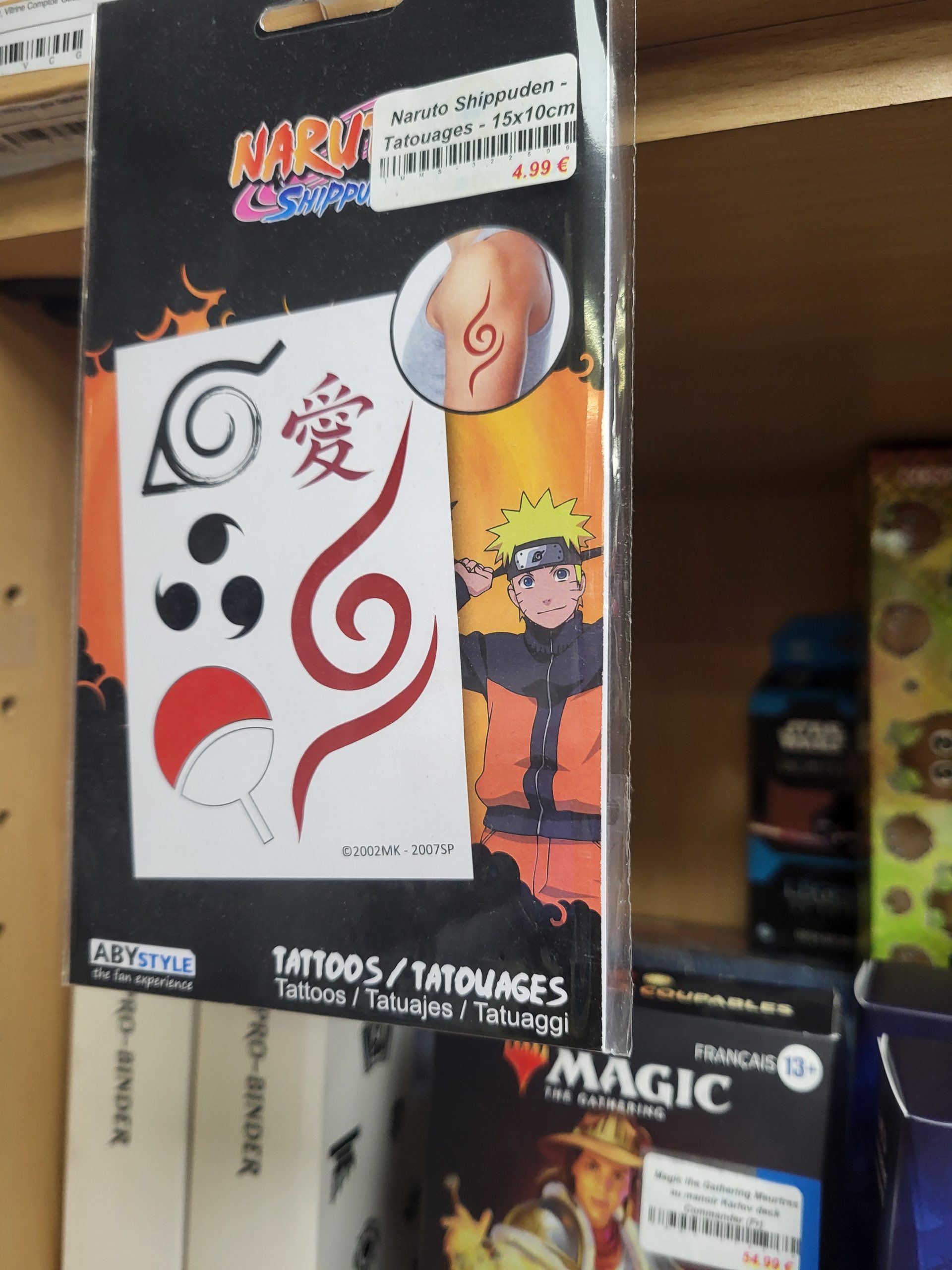 Ces planches de tatouages de 10 x 15 cm regroupent les meilleurs visuels de Naruto Shippuden. C’est l’accessoire fun et rapide pour tous les fans qui veulent porter les emblèmes de leur clan préféré. Venez choisir votre modèle en magasin ! ⛩️💨