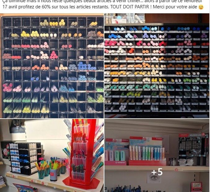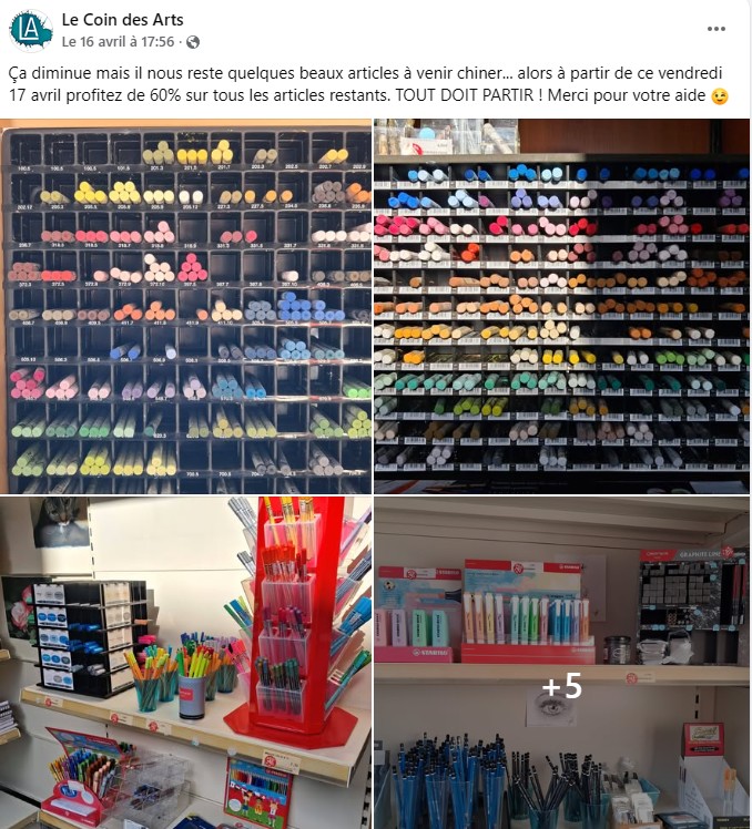 Il reste quelques articles sympas pour les artistes en herbe ou confirmés et pourquoi pas faire le plein pour ses futurs sessions puisqu’elle continuera normalement les cours après la liquidation du magasin.